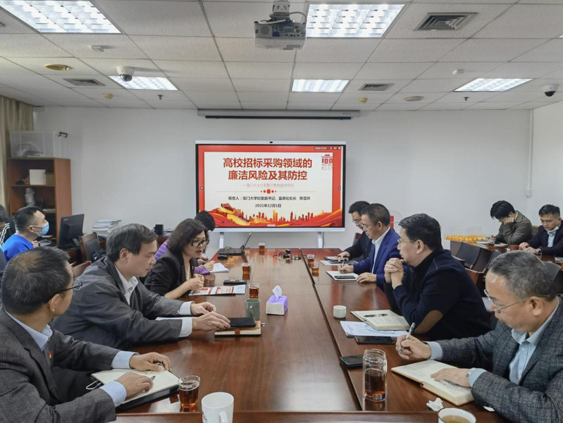 资产与后勤事务管理处处长苏清伟同志、招投标中心主任王沈扬同志相继围绕巡视整改有关工作落实情况以及部门风险防控、警示教育等工作开展情况在会上做了报告。随后,与会人员围绕有关主题进行了工作交流。