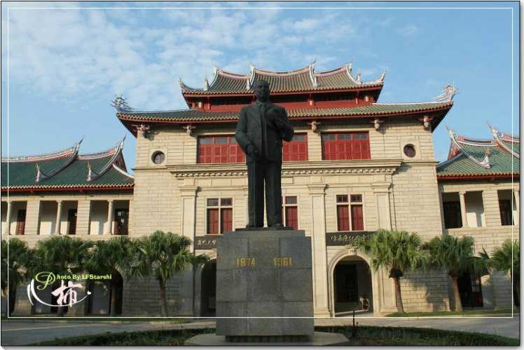 陈嘉庚先生(1874—1961年),字科次,著名的华侨实业家、教育家。历任中央人民政府委员、全国人大常委会委员、全国政协副主席、全国侨联主席等职。陈嘉庚先生17岁随父亲到新加坡学习经商,因其勤奋刻苦、经营有方,仅用20余年的时间,即发展成南洋各埠声名显赫的大实业家。1893年陈嘉庚先生第一次回故乡,即出资2000元在集美开办“惕斋学塾”,这是陈嘉庚先生捐资兴学的开端。1910年陈嘉庚先生在新加坡参加同盟会,大力资助孙中山的革命活动。1911年满清政府被推翻后,陈嘉庚先生怀抱“教育兴国”、“兴学报国”的信念,先后在故乡创办了集美小学、女子小学、师范、中学、幼稚园、水产航海、商业、农林、女子师范、幼稚师范、乡村师范、国学专门等校和福建省最早的综合性大学——厦门大学,建立起一套完整的教育体系。陈嘉庚先生一生倾资兴学、赤诚报国的义举,深为海内外人士所敬仰,曾被毛泽东主席誉为“华侨旗帜,民族光辉”。