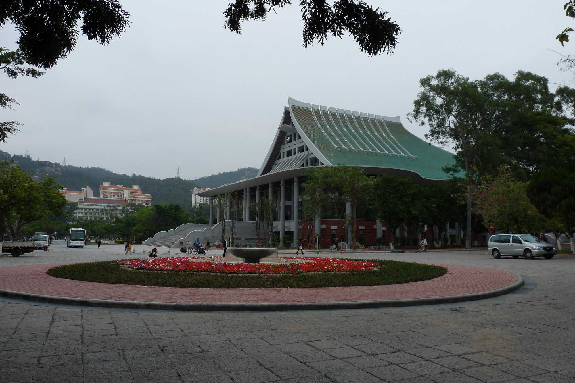 花木葱茏,绿草如茵,成义楼下的萨本栋广场近日旧貌换新颜。