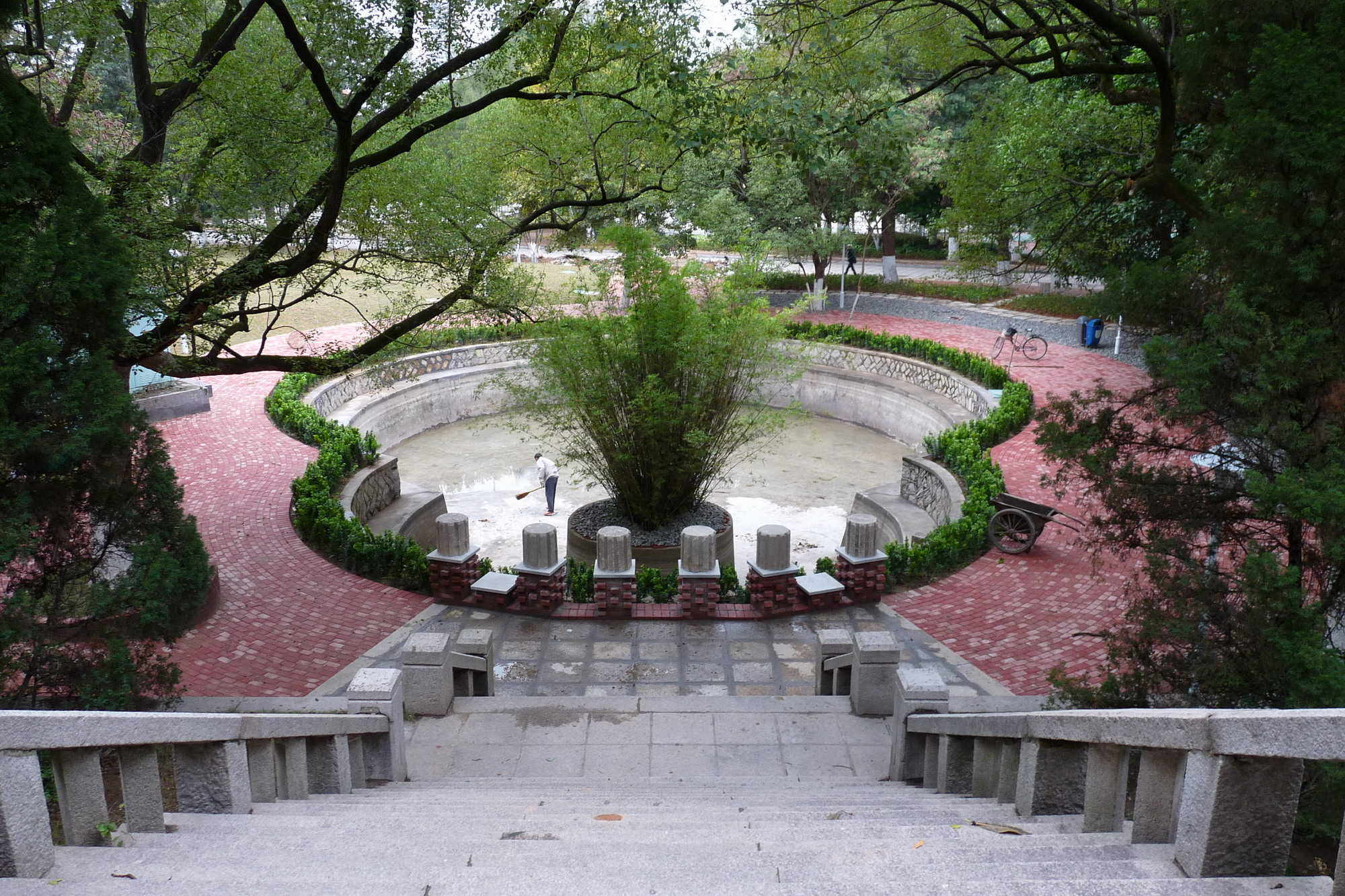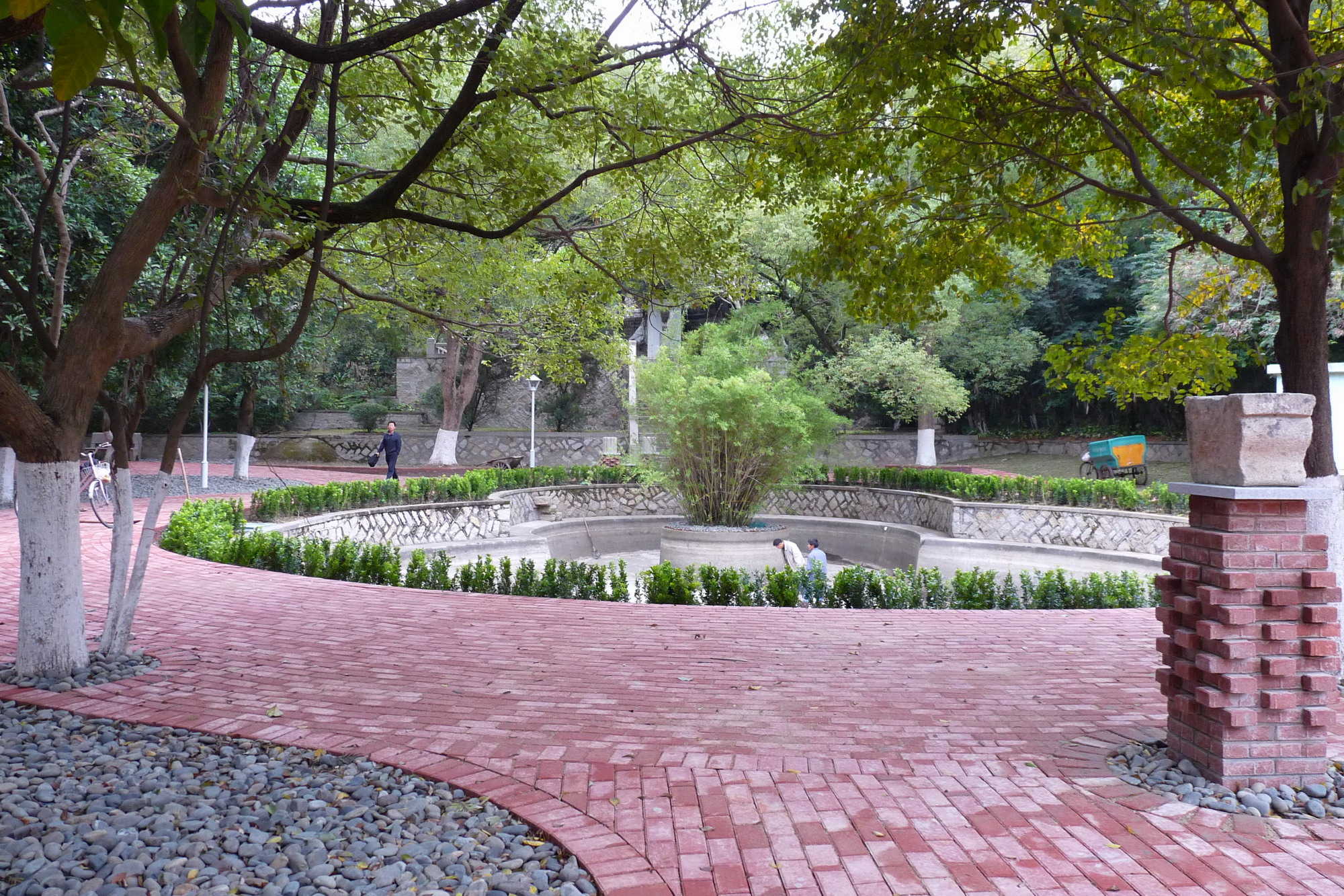 萨本栋先生是我校第三任校长,在抗战爆发、举校内迁长汀办学的艰难环境下,带领全校师生发愤图强,以高尚的人格赢得全体师生的尊敬。他的墓园位于成义楼后,墓前广场因时间久远,黄土裸露,周边环境较为杂乱。为进一步美化校园环境,创建绿色校园,11月下旬,学校着手对萨本栋广场进行改造,科学规划,拆除旧水电科办公楼,铺设透水砖、鹅卵石,重新进行了绿化改造。改造绿化完工后的萨本栋广场掩映在高树修竹中,与校园环境有机融合,为我校师生凭吊先贤、休闲小憩再添新去处。