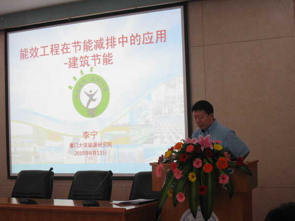 6月13日下午,学校在颂恩楼220报告厅举行‘厦门大学2010年节能宣传周活动-节能专题讲座’,邀请厦门大学能源研究院院长李宁教授为我校师生作节能专题报告,报告主题为《能效工程在节能减排中的应用——建筑节能》。各学院分管节能减排工作的领导、校机关部处秘书、后勤系统干部职工及学生代表共100余人参加了讲座。