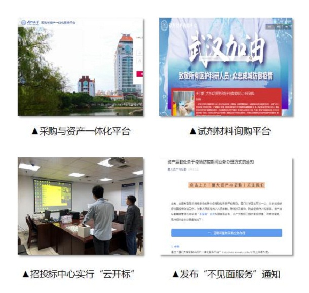 在新冠肺炎疫情防控时期,为最大限度地减少人员接触,避免人员聚集造成交叉感染,我处推行“不见面服务”。在货物和服务采购方面,充分利用现有的“厦门大学采购与资产一体化服务平台”“实验室试剂耗材询购系统”“物资采购管理系统”等开展相关业务,部分疫情防控项目和特殊急需项目业务办理实行绿色通道,特事特办,急事急办。