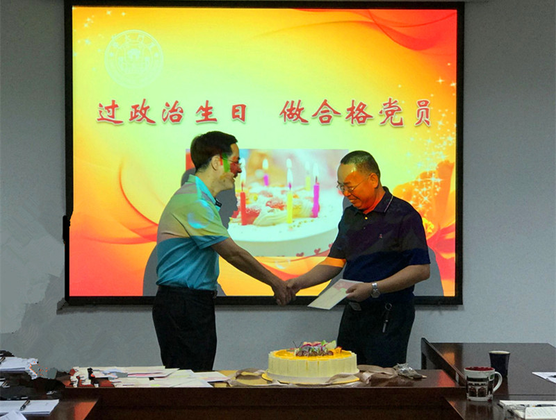 颁发“生日贺卡”、赠送“廉政书签”、同切“生日蛋糕”、发表“生日感言”、讲述“我的入党故事”……在建党96周年即将到来之际,6月21日,资产处在职教职工党支部为第二季度入党的16名党员,集体过了一次特殊的生日——政治生日。校长助理、机关党委书记邱伟杰为这16名党员赠送了政治生日贺卡和“生日礼物”。