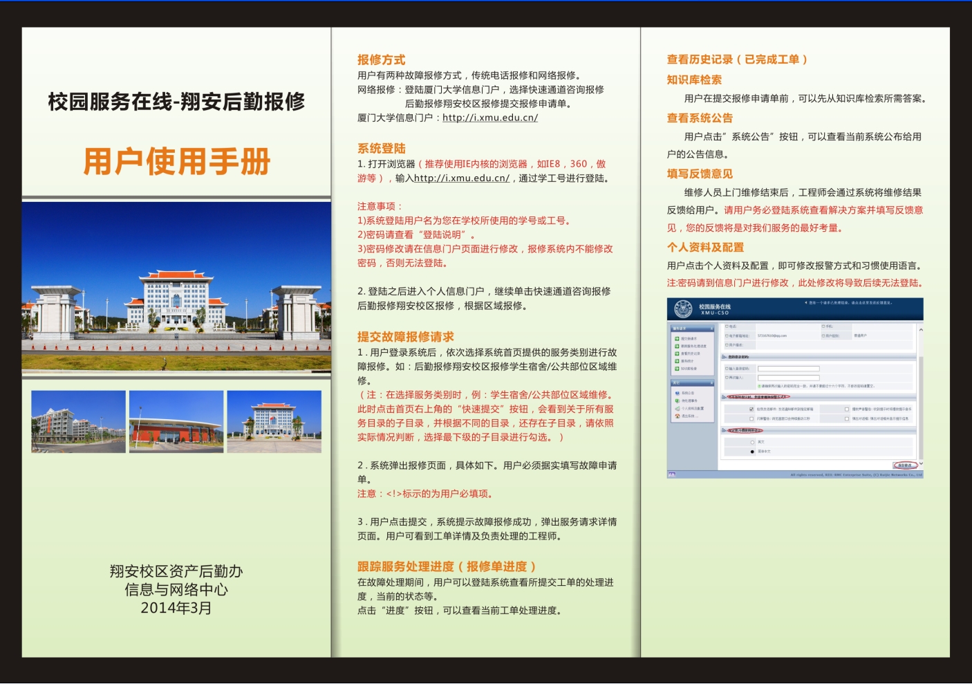 附:厦门大学翔安校区网络报修系统用户使用说明