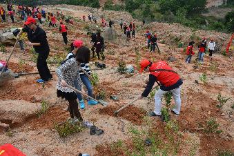 经过一个上午的劳动,志愿者们共栽植了近600棵香樟树苗,原本光秃秃的荒山有了绿色的小树苗的点缀显得生机勃勃。志愿者们衣服都脏了,挂着汗珠的脸上却露出了带着成就感的笑容。