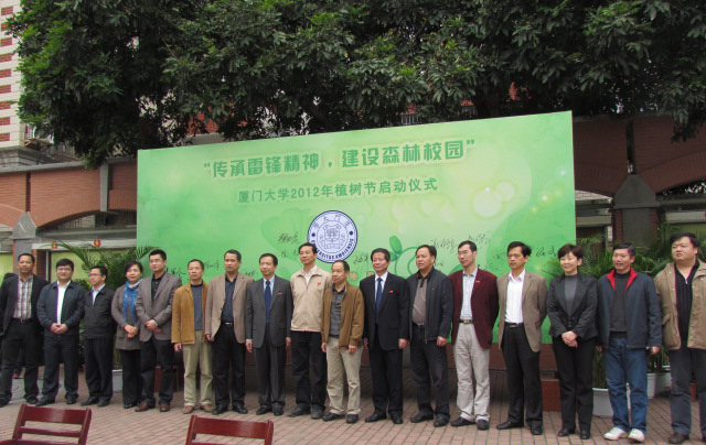 3月3日上午9时,由厦门大学绿化委员会和资产后勤处主办的厦门大学2012年植树节在三家村学生活动广场举行启动仪式。赖虹凯副校长,厦门市绿化委员会办公室主任、市政园林管理局公园与风景管理处王亚平处长以及学校有关部门、单位领导和师生代表参加了启动仪式。