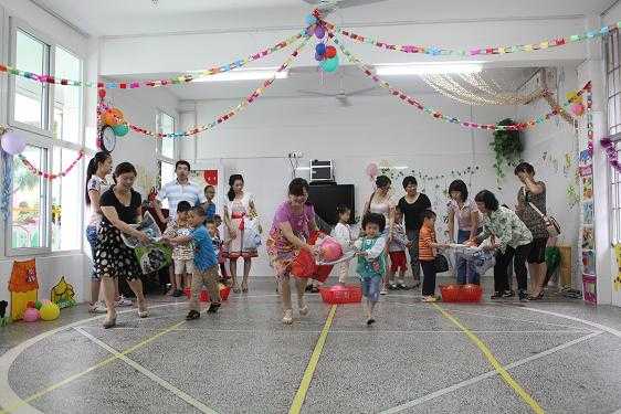 6月1日上午,装扮一新的厦大幼儿园喜庆洋洋、繁花似锦、人潮涌动,到处洋溢着欢乐的儿童节日气氛。孩子们早早带着家长来到园里参加活动,虽然天空下着淅沥小雨,但孩子们的热情不减。瞧,《接果果》、《盲人敲锣》、《抢椅子》……在这些游戏项目中,小朋友们尽情放松自己,体验着欢乐和激情,欢声笑语回荡在整个幼儿园里。