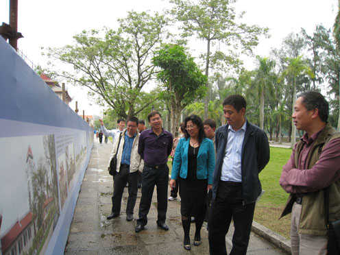 11月6日下午,国家文物局文物保护司司长关强一行莅临我校视察群贤楼群。福建省文物局郑国珍局长、福建省文物局文物处何经平处长、资产后勤处苏清伟副处长、建筑与土木工程学院张建霖教授等陪同关强司长先后视察了同安-集美楼修缮工程现场、修缮后的群贤楼、以及建南大礼堂。在同安-集美楼修缮工程现场,关强司长详细了解群贤楼群的演变历史以及其修缮工程设计方案,他表示“嘉庚建筑”是珍贵的历史文物遗产,在修缮保护过程中,应遵循“修旧如旧”的原则,延续“嘉庚建筑”风格。与此同时,关强司长还指出,厦门大学在做了许多文化保护建筑修缮工作后,应总结经验,积累技术,在这一领域有所作为和突破。