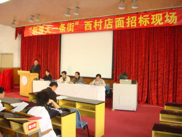 2008年11月19日上午9:00,我校化学报告厅举行了一场“新厦大一条街”店面的招投标现场会,与以往不同,本次招投标采用现场公开竞价的方式,聘请专业拍卖师主持竞标,各投标人在招标文件公布的投标低价基数上举牌竞价。