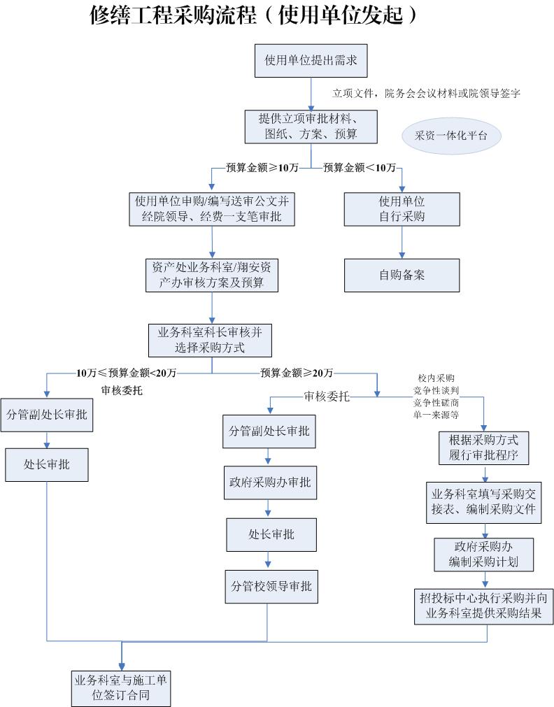 修缮工程应先通过厦门大学采购与资产服务一体化平台进行采购备案,财务报账前,结算审计材料纸质件送资产后勤处、审计处进行备案。