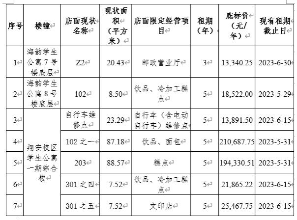 海韵学生公寓7号楼底层Z2店面竞租人须为依据《中华人民共和国邮政法》可以提供邮政普遍服务的企业。