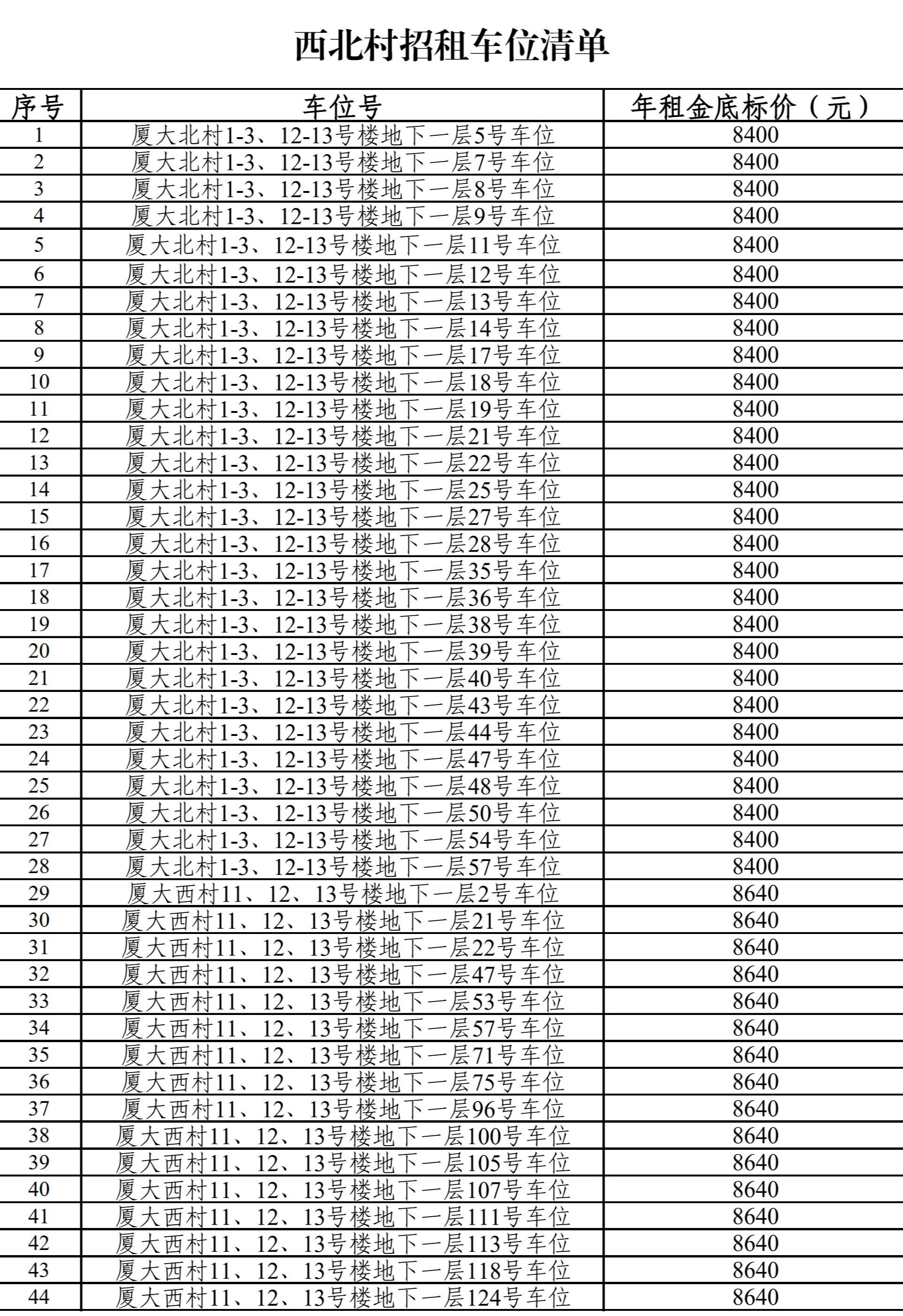 (2)西村、北村车位招租对象仅限于西村11-13、15号楼业主、厦大西村店面承租商家、北村1-13号楼业主(包含旧北村)和厦大北村店面承租商家。