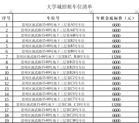 (1)大学城车位面向社会公开招租;