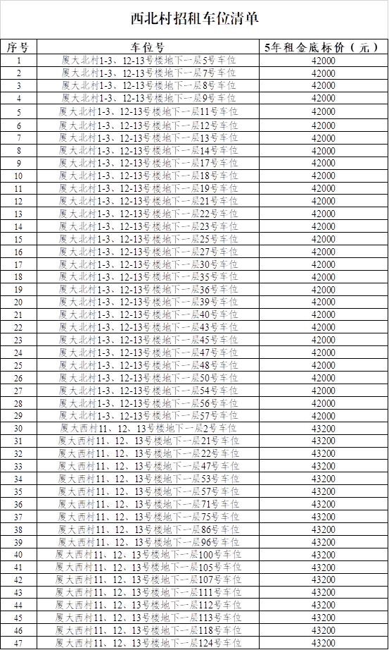 (2)西村、北村车位招租对象仅限于西村11-13、15号楼业主、厦大西村店面承租商家、北村1-13号楼业主(包含旧北村)和厦大北村店面承租商家。