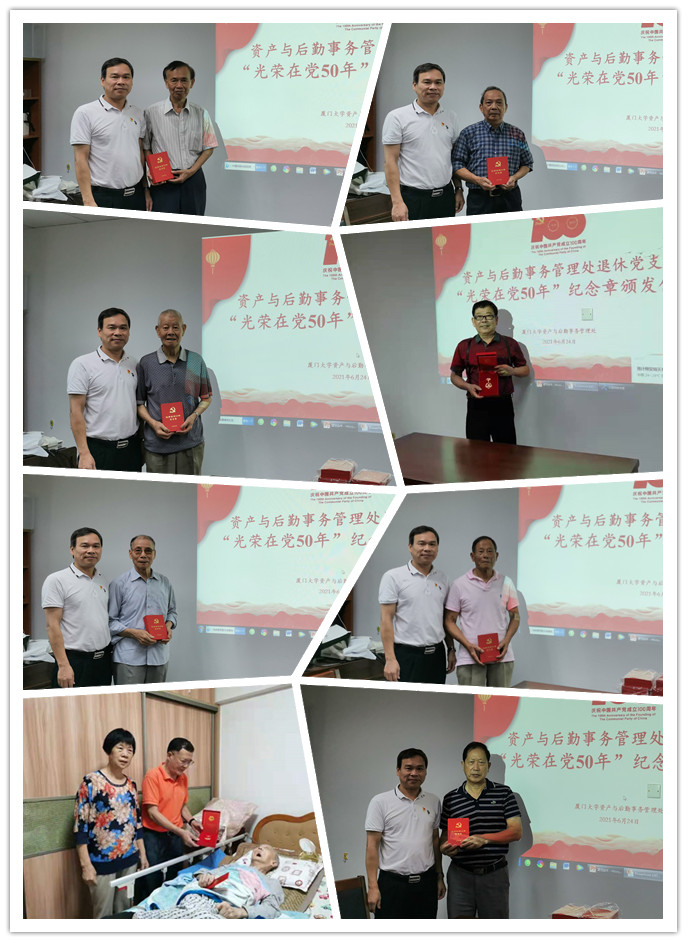 50年党龄,50载光荣。6月24日上午,资产与后勤事务管理处退休第一、第二党支部在颂恩楼615室举行“光荣在党50年”纪念章颁发仪式,共有13名老党员获此殊荣。