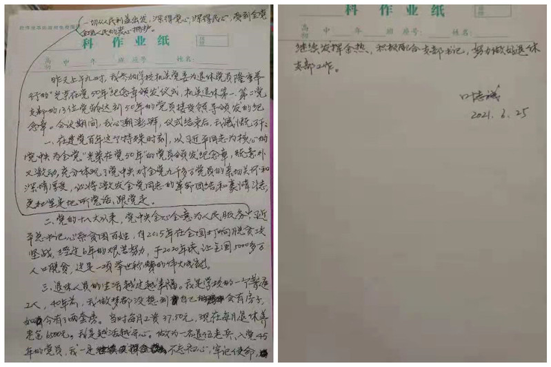 老党员叶志诚党龄已有45年,在看到老伙伴们受颁纪念章后,他心潮澎湃,亲笔抒写体验与感受,表达了对党的深情和退休不褪色、为党的事业发挥余热的拳拳之心。