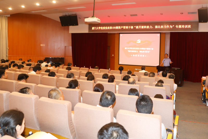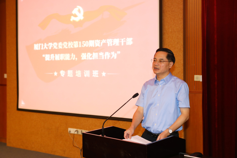 7月9日上午,由党委党校和资产与后勤事务管理处共同举办的党委党校第150期资产管理干部“提升履职能力,强化担当作为”专题培训开班仪式在思明校区化学报告厅举行。校党委常委、副校长邱伟杰作开班动员,各学院(研究院)领导、资产管理和采购工作的工作人员200余人参加了仪式。仪式由党委党校副校长何丽新主持。