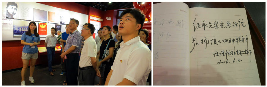 参观完革命史展馆后,党员们一同分享了自己的心得与感悟。吴福武第一次过政治生日,心情十分激动,他结合近期阅读的《苦难辉煌》一书,谈到“信仰”要坚定;张玉辉满怀深情地提到,作为六七十年代出生的人,在党的领导下,生活发生了翻天覆地的变化,对党永远感恩;朱亚鑫、陈顺源提到要立足本职岗位,脚踏实地工作;许熠堃反思自己要像革命先辈学习,勇于担当;张福中、胡敏认为要有强烈的爱校意识……大家都纷纷表示,要把入党时的追求和现在的思想对照起来,把入党誓词的内容和当前的工作结合起来,始终坚定跟党走的信念,从大处着眼、从小处做起,立足本职创先争优。