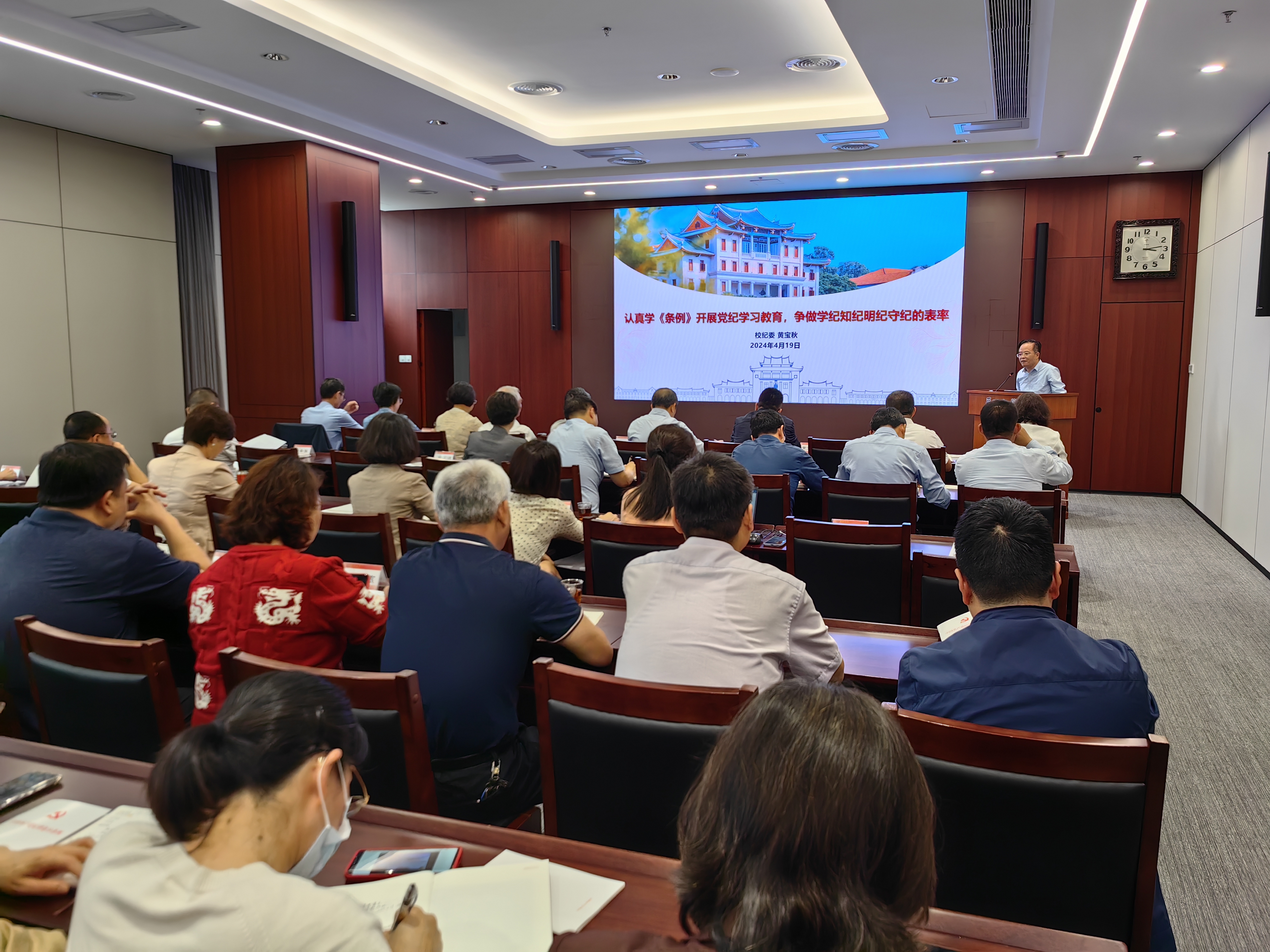 4月19日,机关党委在颂恩楼220报告厅召开党纪学习教育部署会。机关党委书记陈雪玲主持会议并作工作部署。机关党委委员、机关处级党员领导干部、机关党支部书记参加会议。